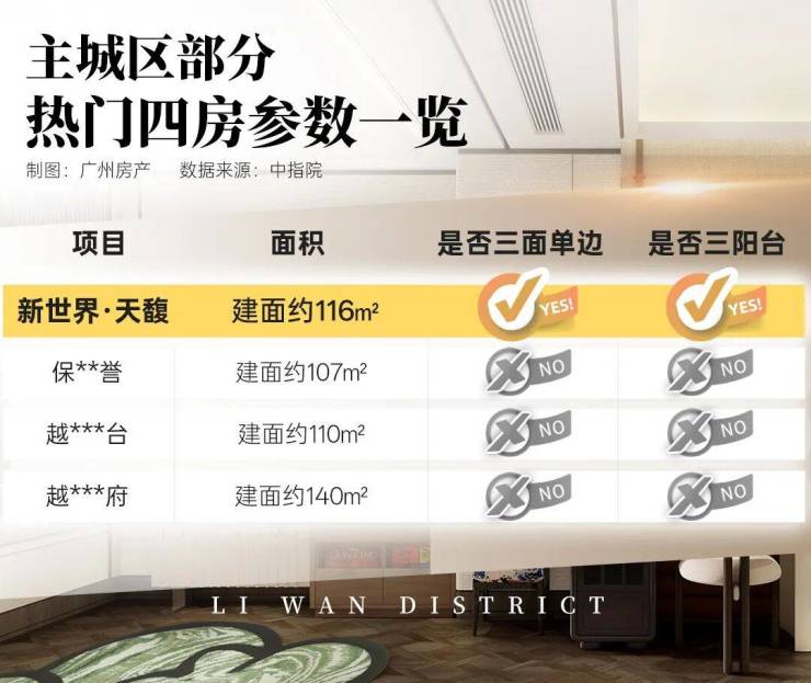 约116㎡晋阶四房:广州罕见三面单边王