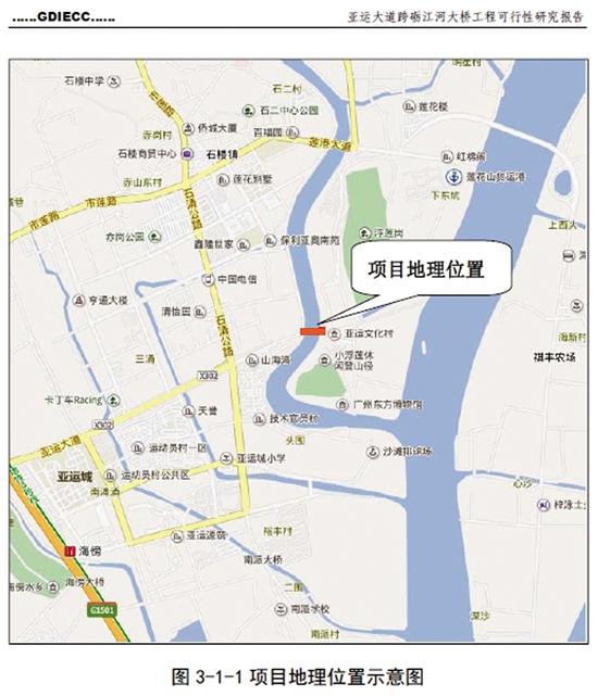 目前,连接该区域的是一座砺江栈桥。该桥是亚运期间为解决亚运文化村交通问题而修建的一座临时钢结构便桥,宽仅11.5米。该桥不仅已经到了使用年限,急需拆除重建,且其原有桥梁的规模也在制约着项目周边的交通出行能力,影响亚运大道的通行效率。