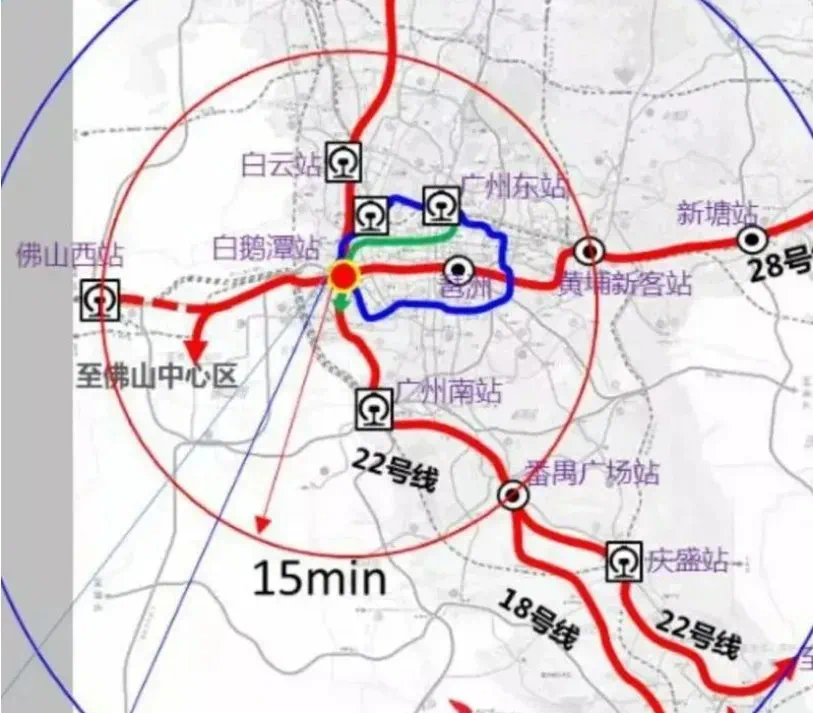 近日,广州地铁就粤港澳大湾区城际广州都市圈线路(广州段)场站综合体前期研究项目进行公开招标。招标文件透露了佛山经广州至东莞城际(地铁28号线)的较新走向和站点规划。