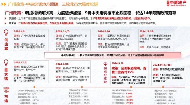 2024年5月,广州发文取消住房贷款利率下限,首套房首付最低15%。9月24日,广州再次调整政策,二套房的最低首付比例降至15%,同时存量房贷利率下降50个基点。