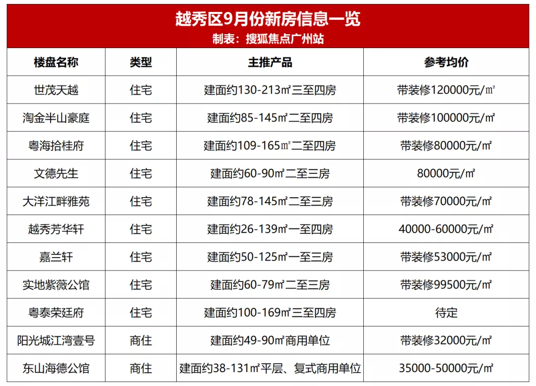 至于新房方面,放眼越秀全区,在售新房并不多,均价5万-12万元/㎡区间。