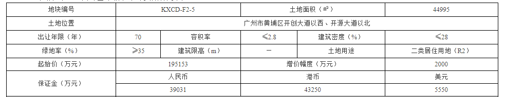 但就在今天,11月29日,广州黄埔成功出让一宗居住用地,该地块为KXCD-F2-5开创大道以西、开源大道以北地块,被时代中国以底价19.5153亿元竞得。