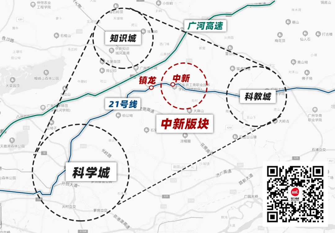 大量的土地出让、旧村改造迅速、21号线通车,依靠着镇龙交通枢纽、中新知识城、广州科教城等重量级项目。