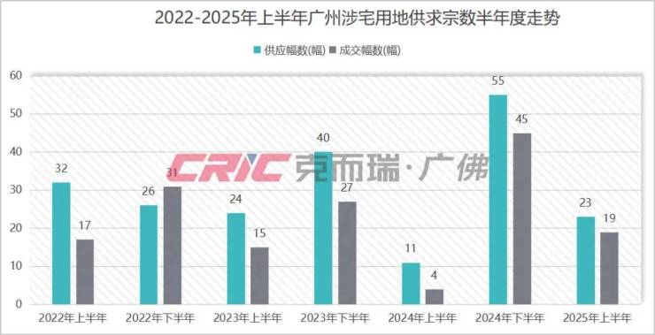 其中去年下半年广州涉宅用地供应55宗,成交45宗。