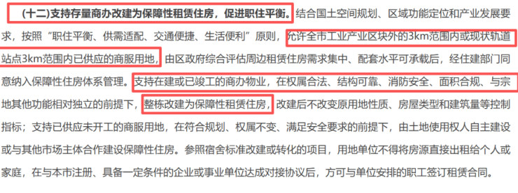 通知提到,支持存量商办改建为保障性租赁住房,促进职住平衡。