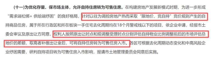 具体措施为,允许自持住房转为可售住房。