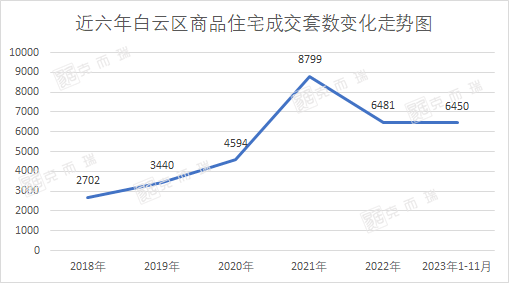 从近几年的走势来看,2021年是白云楼市最火热的一年,当年成交8799套商品住宅。