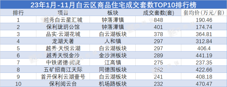 最后,我们一起来看看2023年1-11月白云区哪些项目卖的最好: