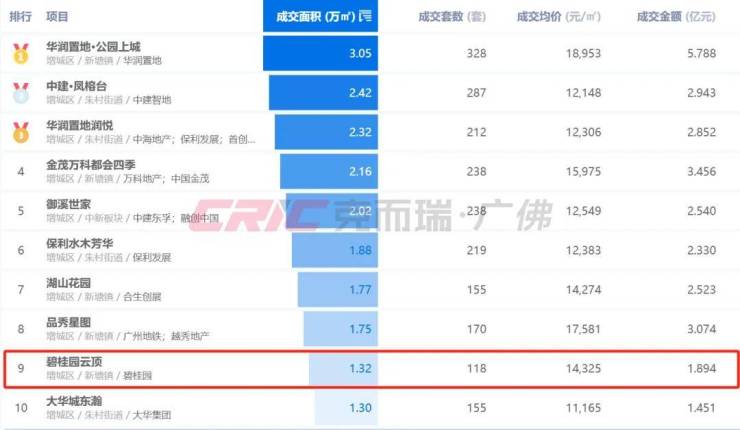 不过,也正是这极具诱惑的价格,克而瑞数据监测显示,今年1-5月碧桂园云顶网签面积1.32万㎡,位列增城1-5月商品住宅成交面积排行榜第九位。