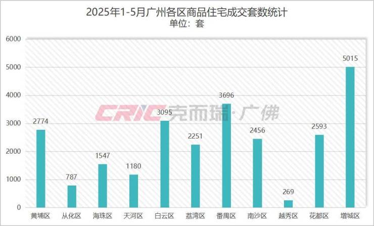 扩大范围看今年以来增城的楼市表现,克而瑞数据监测显示,今年1-5月增城商品住宅成交5015套,为全市最高。