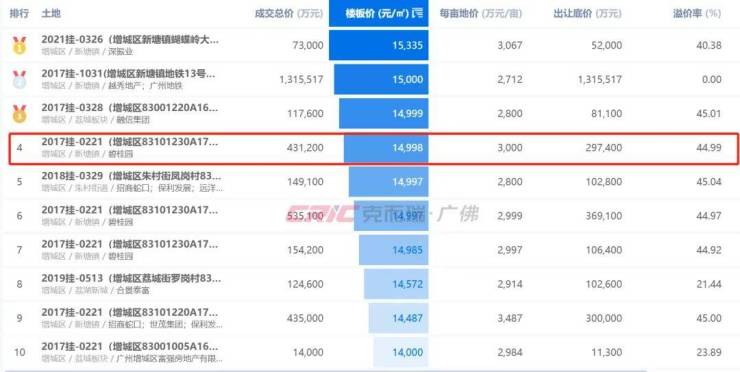 不仅如此,该地块的成交记录依旧位列近八年增城涉宅用地成交排行TOP4。