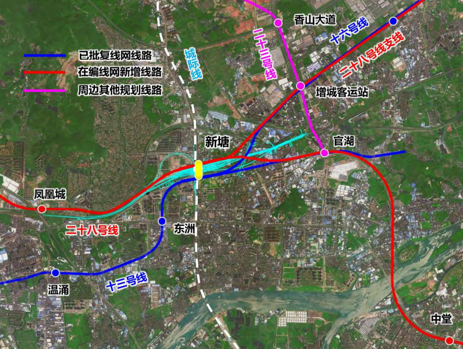 其实,在不久前,新塘站一体化可研性报告出炉时,28号线整体走向就已曝光。而这是少有一次较为准确的官方文件曝光。