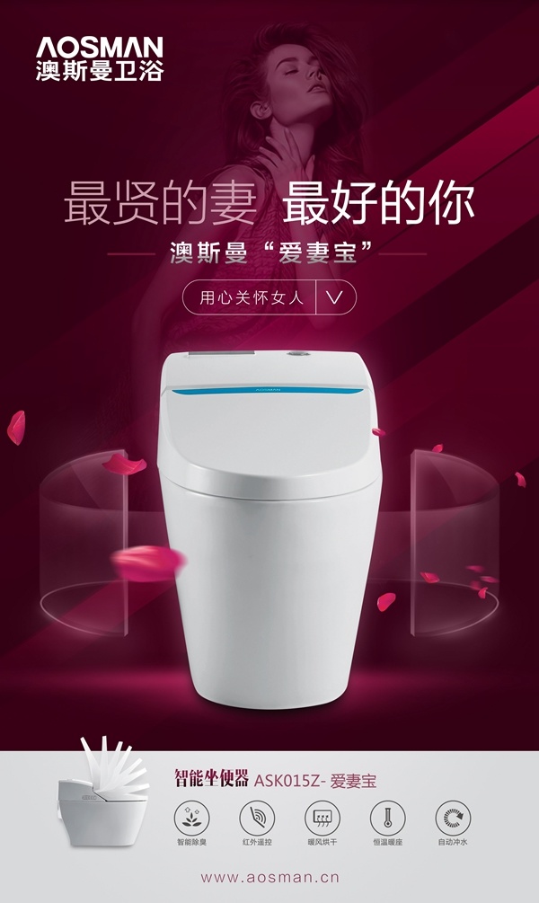 在充满爱的甜蜜五月里,澳斯曼卫浴为您介绍两款有诚意、有爱意的产品——“爱妻宝”&“爱家宝”系列智能马桶。