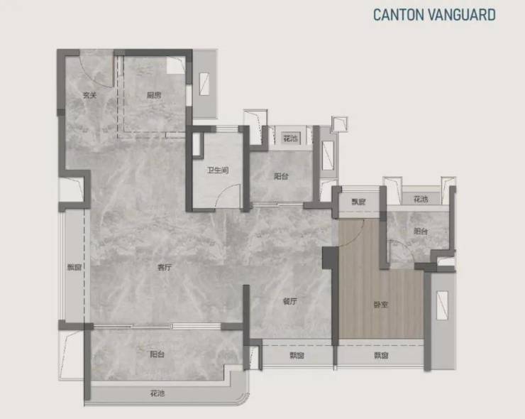 例如广州地铁地产珑曜上城73㎡户型,通过阳台、飘窗等赠送空间,结合LDKB一体、U形厨房、以及通道空间复合利用等方式,让飘窗不再“空有其表”,实现了四开间,双阳台,主卧套间设计,使得空间格局更为宽敞,媲美市面上旧规90㎡户型尺度。