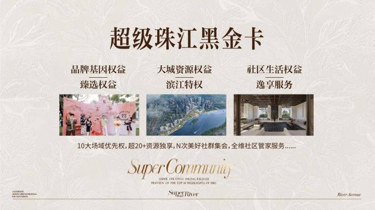 此次发布的超级珠江“黑金卡”业主专属特权,打造权益体系,标志着一次彻底的升华。这不仅是一处居所,更是一张永久入场券,通往一种别人需要旅行才能抵达的生活方式。你所购买的,不是一个楼盘,而是一个可漫步、可倚靠、可发生新故事的“现场”。