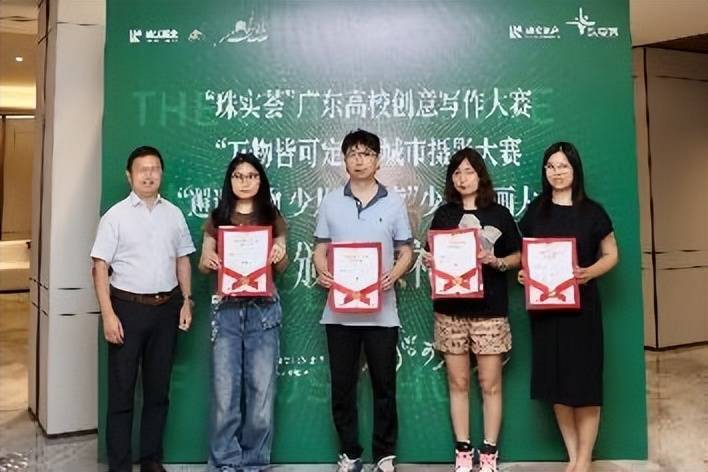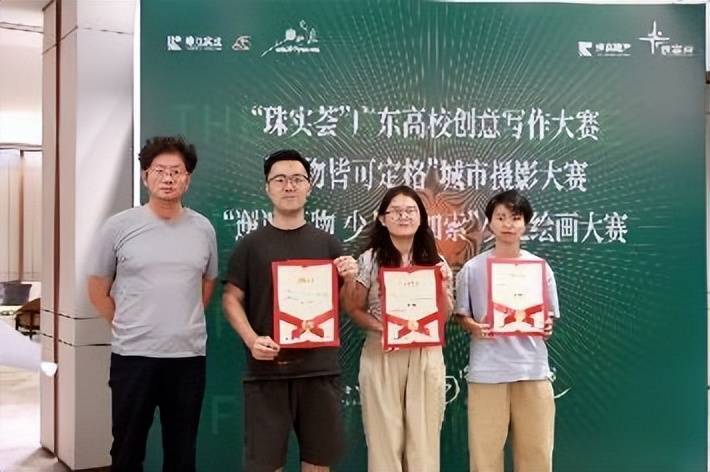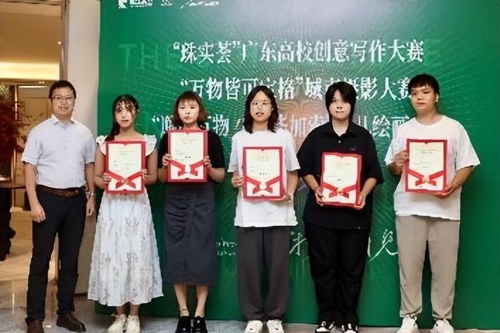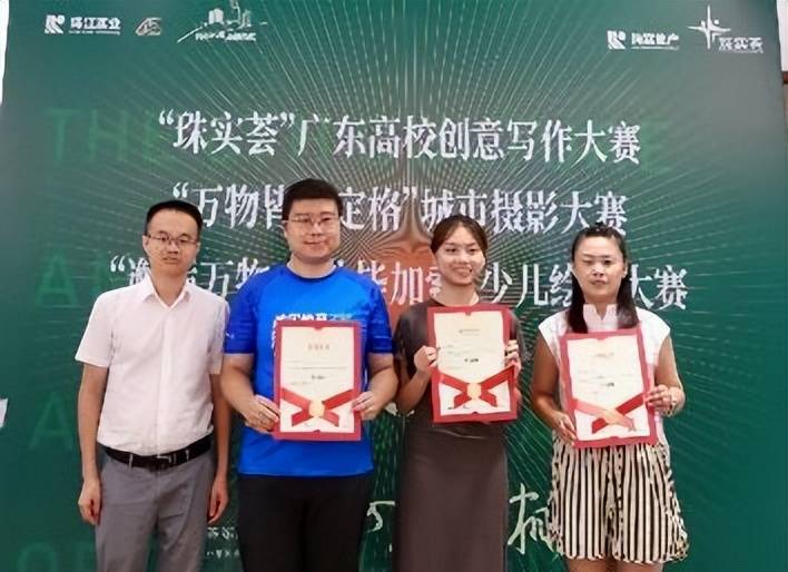 广州珠实地产有限公司营销策划部副总经理郭玉杰为“珠实荟”广东高校创意写作大赛高校组新星奖得主颁奖