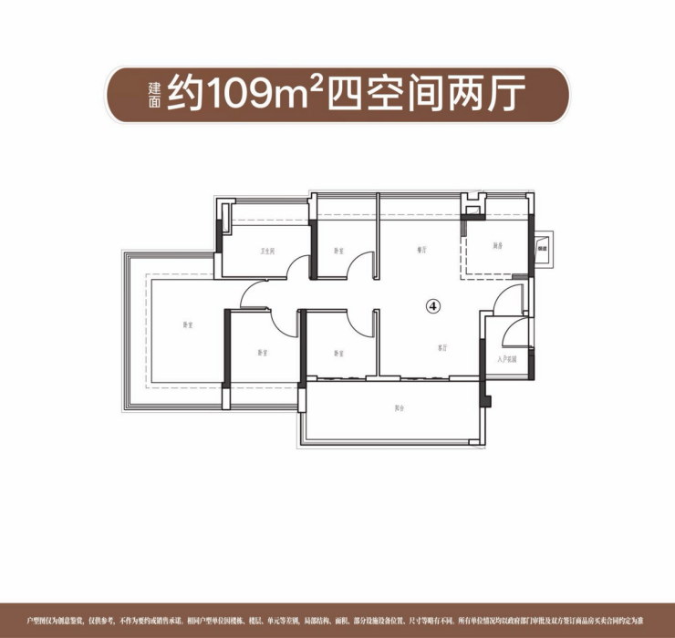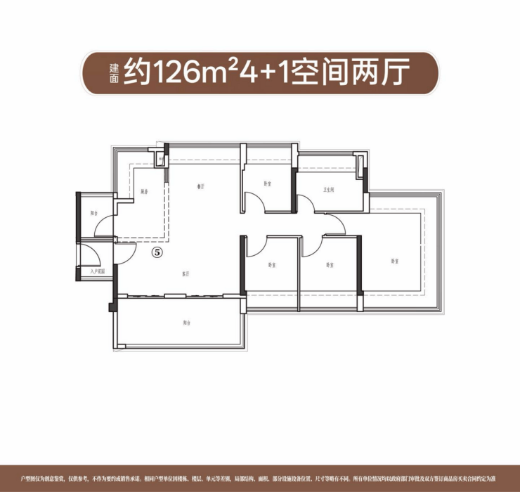 该户型为4+1房设计,实际感受后与市面上建面140㎡以上的大户型相近。户型延续南向设计优势,阳台采光面宽度达到约6.2米。
