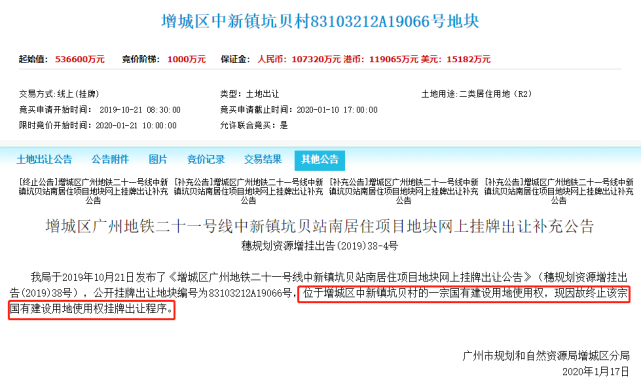 增城区中新镇坑贝村83103212A20019号地块涉及配建20000平方米政府拆迁安置房源,另本次挂牌成交价包括99000平方米地下车库及设备用房的土地出让金,若地下车库及设备用房的实测面积超过99000平方米,超出部分则按相关规定补缴出让金。