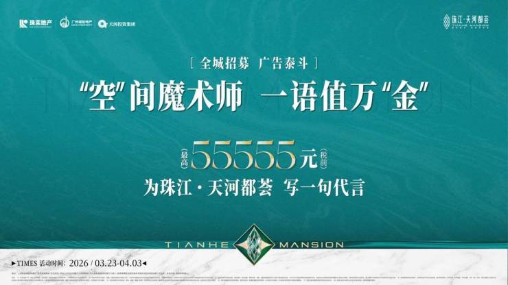 为回馈广大客户,共同谱写大众对好房子的期待,邀全民共同书写新时代人居表达,3月23日,珠江・天河都荟正式启幕「“空” 间魔术师 一语值万 “金”」广告语全城征集活动,以最高55555元(税前)现金大奖诚邀全民执笔,为天河新规人居标杆写一句代言,让好房子的美好被更多人看见。