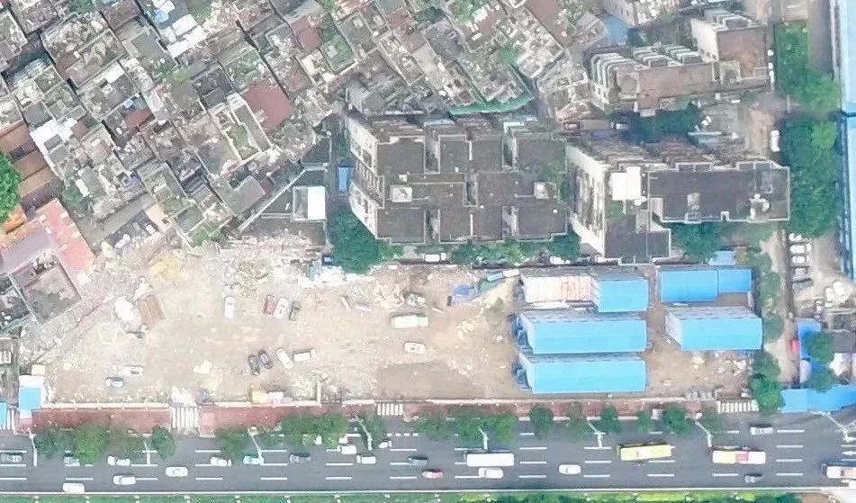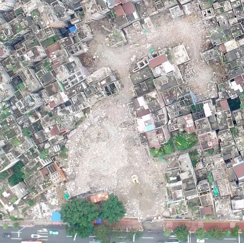从航拍图可以看到,全村东南西北各个方向都在推进拆除,空地面积越来越大。