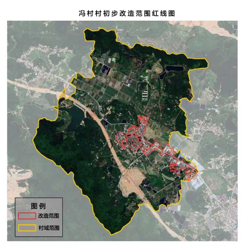 冯村经济产业发展主要为农耕、果园,村内多种植水稻和果树,有华农基地和木瓜基地等农业产业。从该村的《村庄规划(2013-2020年)土地利用规划图》也可以直观看到,村庄建设用地主要在村域中心位置,周边大部分为基本农田、农业用地、林业用地等。