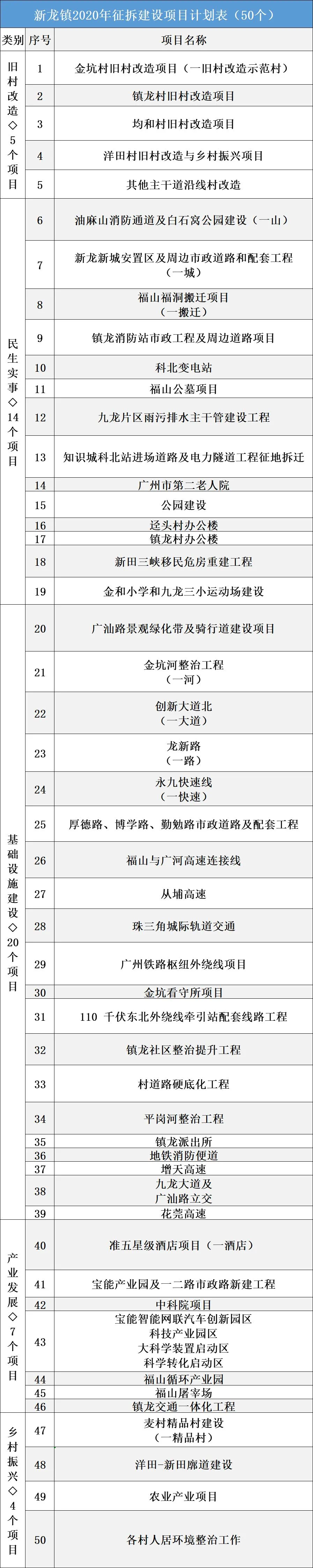 2020年,新龙镇再度发力,一口气拿出了50个征拆建设项目。
