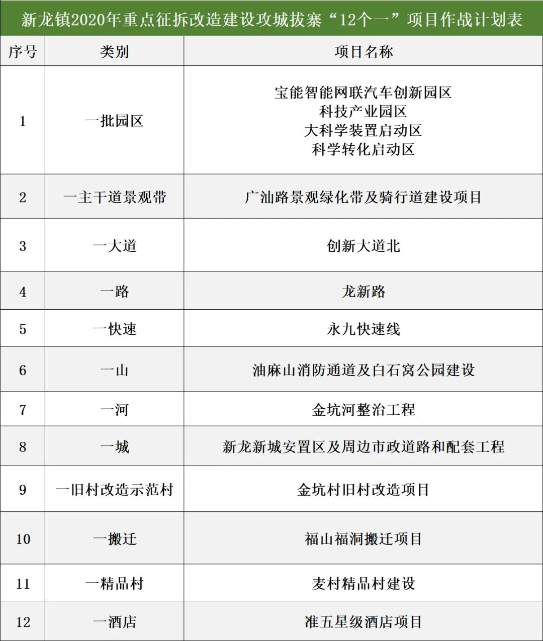 12个攻城拔寨重点项目
