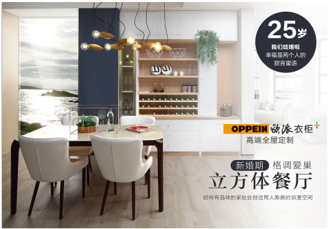 作为欧派旗下的后起军团,欧派集成家居从2016年开始,完成了从衣柜到高端全屋定制,从卖产品到卖空间解决方案,再到卖生活方式的消费模式全面升级。以及2016年一系列漂亮的营销组合拳:从“中国好闺蜜”大型营销事件,到与东鹏瓷砖打造的跨界营销模式;从在全国终端推出的“19800元全屋定制套餐”,到引入VR系统;从赞助跨界歌王,到开发创意病毒视频……欧派衣柜的营销创意,不仅刷爆了家居行业的朋友圈,也使欧派衣柜高端、时尚的品牌形象深植于消费者心中。