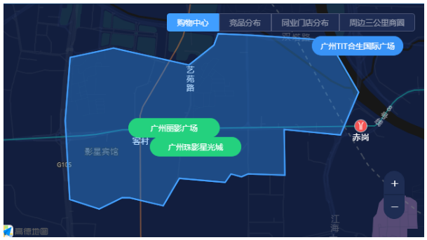 作为广州人流量较高的商圈之一,客村-赤岗商圈内拥有95万居住人口,目前片区有珠影-丽影广场、四季天地等等商业体。