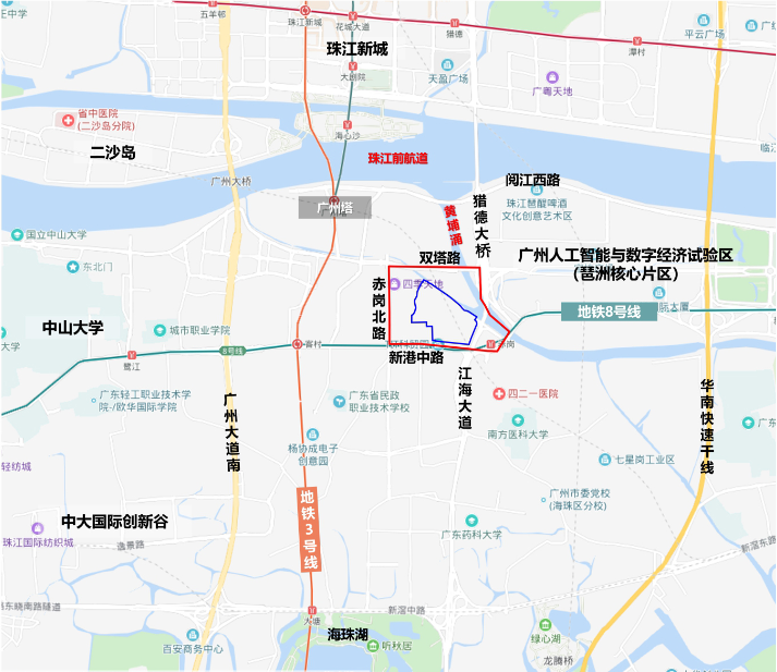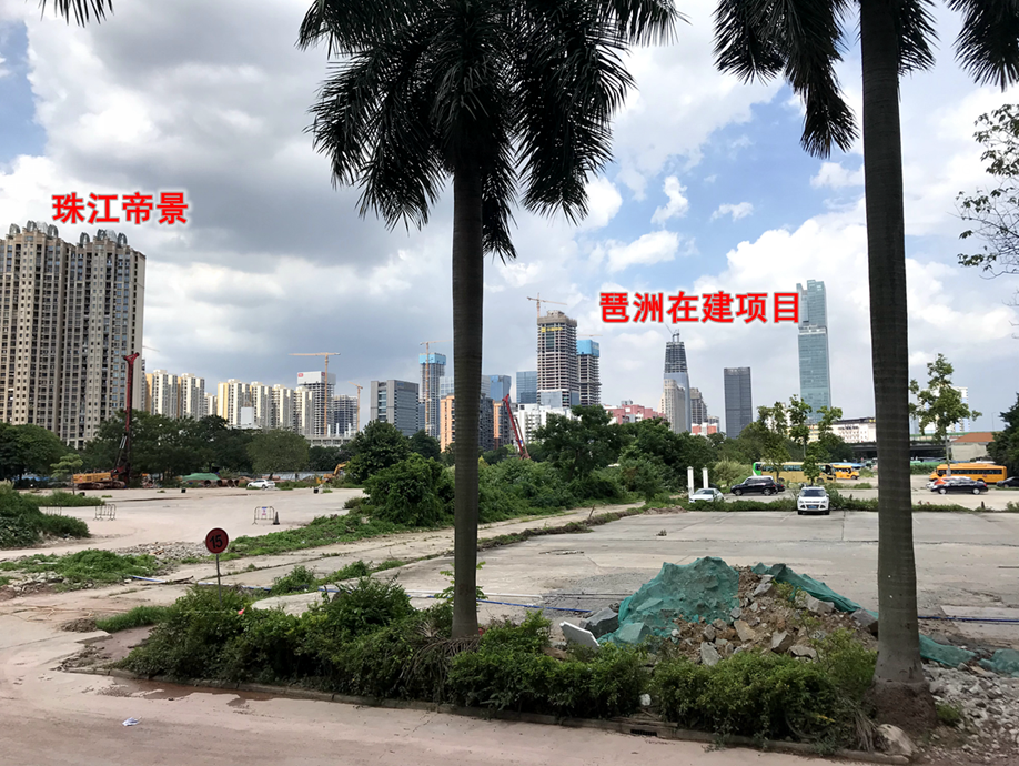 地块东边,为琶洲互联网创新集聚区,一幢幢高楼封顶在即;而其北面为二手单价7、8万的珠江帝景。