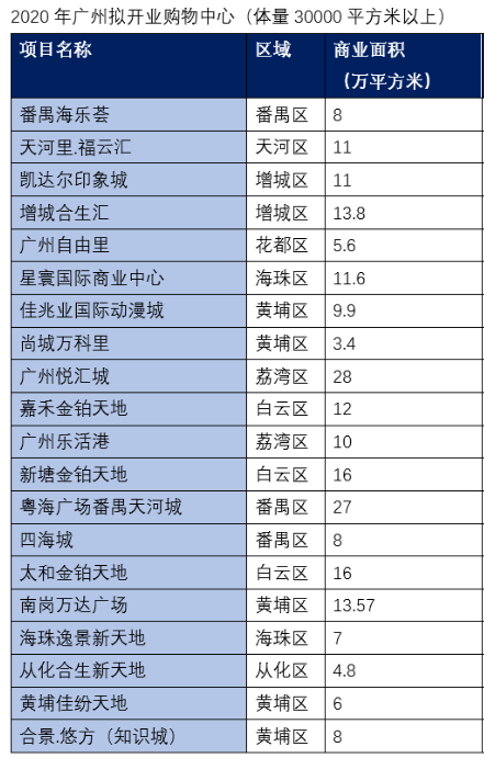 另外,除了合生国际广场之外,今年广州还有不少新商业体将重磅来袭,即将开业的项目就达到了20个,遍布荔湾、番禺、黄埔、增城等区域。