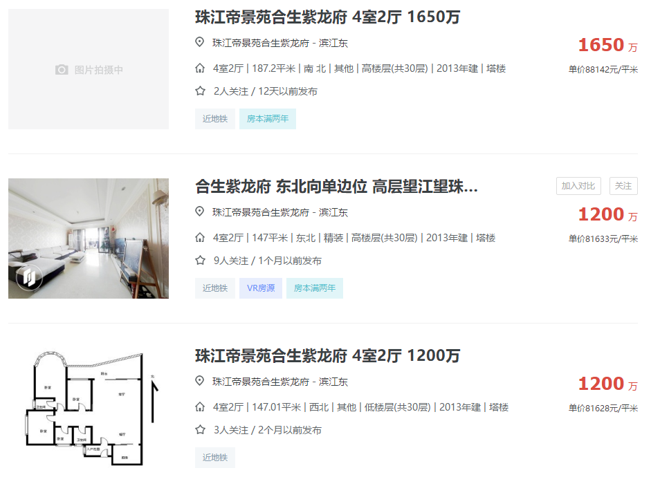 片区优质的二手电梯房,售价已超5万元/㎡,珠江帝景等地标性住宅项目,房价更是突破8万元/㎡。