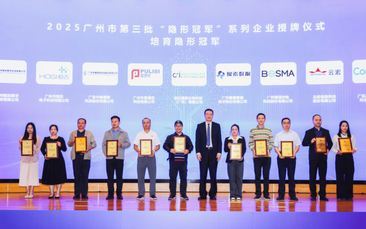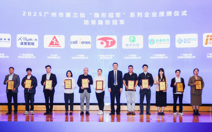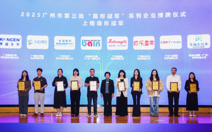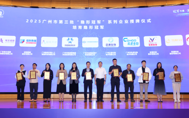 大会隆重发布《广州市第三批隐形冠军系列企业发展报告》。粤港澳大湾区国家技术创新中心国创集团李冠庆先生代表主办方发布报告并作专题解读。报告指出,截至目前,广州已累计培育264家隐形冠军企业,覆盖人工智能、生物医药、新材料等战略领域。这些企业以创新能力强、市场占有率高、核心技术自主可控为核心特征,成为广州新质生产力的中坚力量。随后,大会为第三批隐形冠军企业授牌,并同步启动第四批发掘工作,通过“动态发现-数字画像-精准服务”机制,持续壮大创新主力军。