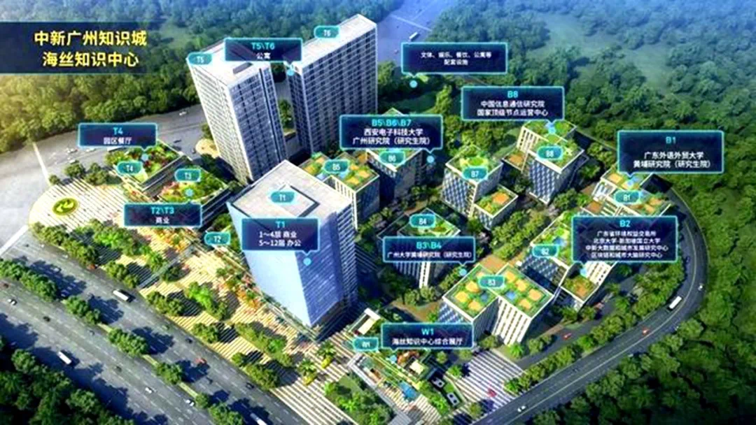 由于知识城科教创新城刚启动建设,上述落户知识城的多所高校,统一进驻知识城南起步区旺村地铁站旁的海丝中心园区,作为过渡期。