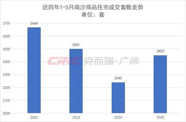 克而瑞数据监测显示,今年1-5月南沙区商品住宅成交2452套,较去年同时期增长9%,供求比0.34,明显好于去年同期。