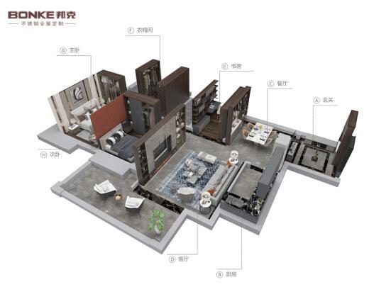 如今,邦克不止于厨房五金单品,其产品线已覆盖玄关、客厅、厨卫、书房、衣帽间、阳台等全屋空间,将不锈钢全屋定制的独特优势较大化发挥,为消费者带去一站式空间解决方案,打造专属化、个性化、差异化的家居空间,让一件产品一个品牌的消费方式成为过去,一个品牌满足所有,突出家居生活的整装一体化。