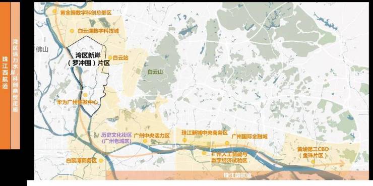 罗冲围片区作为白云区重点打造的“湾区新岸,将依托华为广州研发中心等龙头项目,重点布局汽车与智慧产业,全力构建鸿蒙生态集聚区。