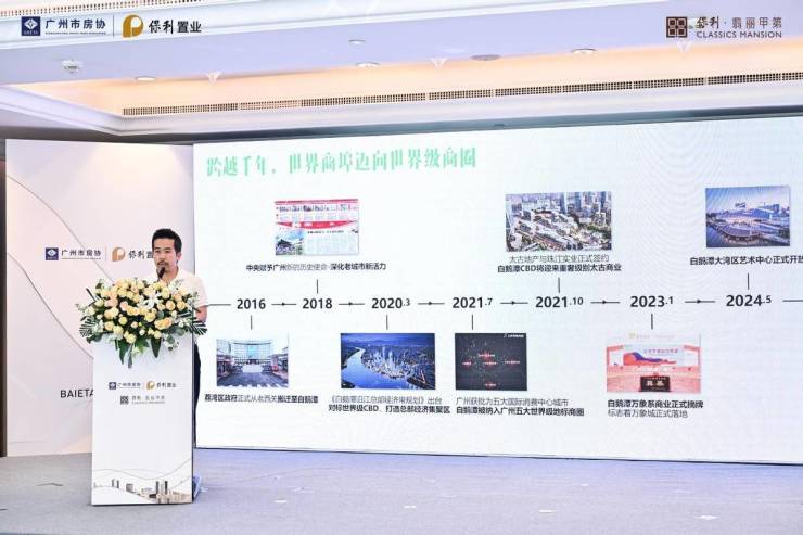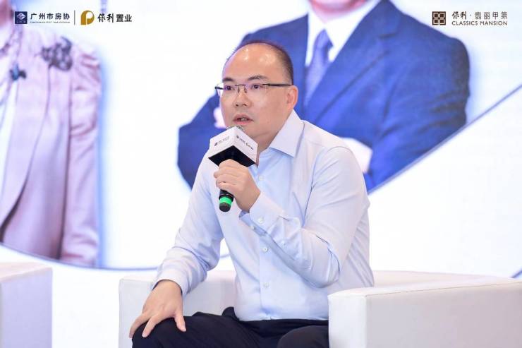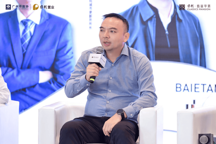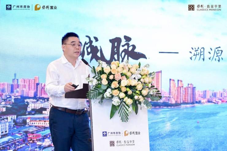保利置业广东公司副总经理杨玉坚则给大家分享了白鹅潭城脉的溯源与发展:指出白鹅潭拥有广州商贸、文脉、江景等顶级资源,保利置业在此传承十三行精神、融合骑楼文化,结合甲第系“东韵西境”精神,打造保利·翡丽甲第项目,为城市匠筑“广州地标建筑”。