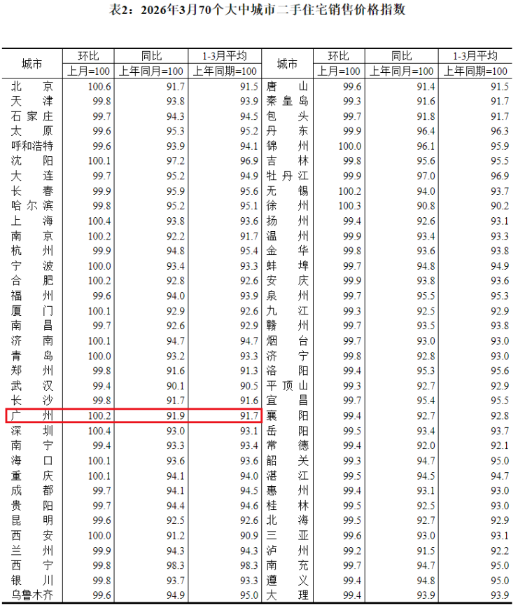 数据显示,3月广州一手房价格环比上涨0.3%,同比下降4.7%;二手房价格环比上涨0.2%,同比下降8.1%。值得一提的是,此次一二手房环比上涨,是自2023年年中以来的首次。