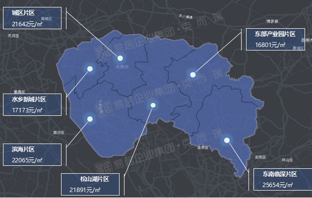 东莞4月各区一手住宅成交均价较高的为与深圳龙岗、龙华两区接壤的东南临深片区,房价去到25654元/㎡,相比上月房价有所上升,涨幅为7%。其次为松山湖片区、滨海片区和城区片区这三个区,其新房均价在2.1万-2.2万/㎡之间,房价较上月提升了1千/平左右。东部产业园片区和水乡新城片区房价则还在1字头,在1.6-1.7万/平左右。