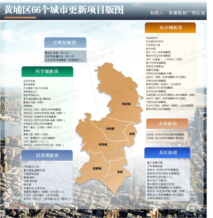 从区域板块分布来看,黄埔66个旧改覆盖全区六大板块。