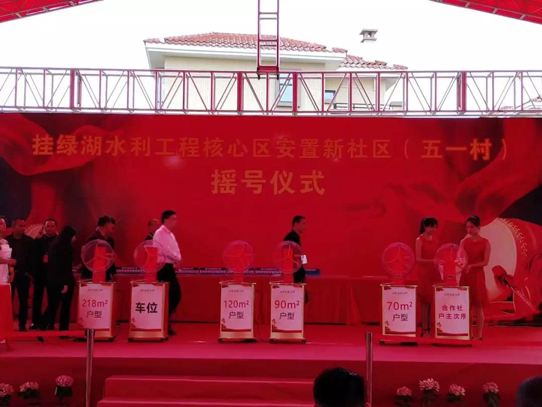 好事成双!就在同一天,五一村也举行了挂绿湖水利工程核心区安置新社区摇号仪式!