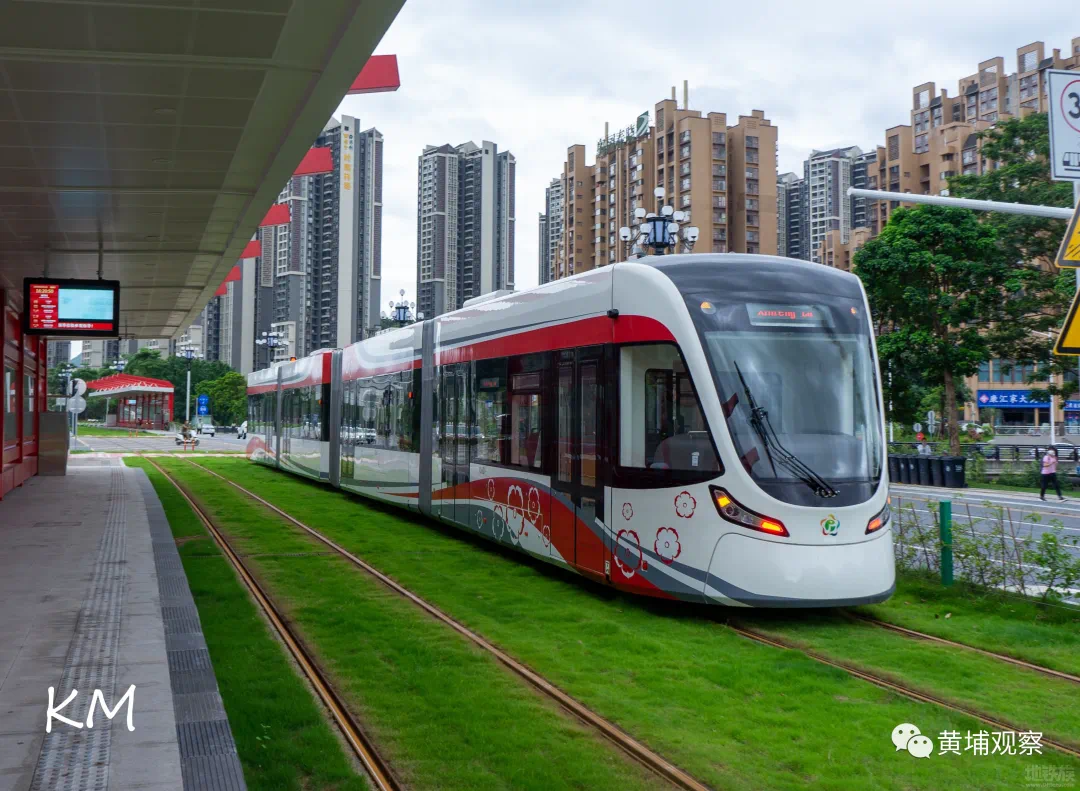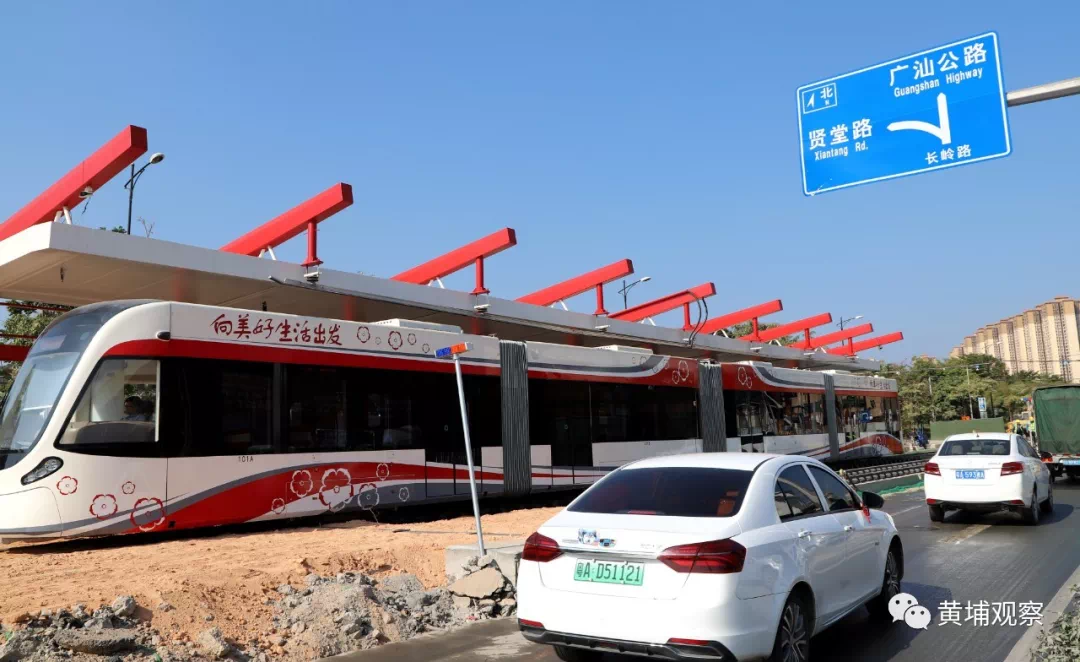 黄埔有轨电车1号线将分两期通车,首期示范段(北师大实验学校站-新丰站)计划于2020年7月开通;全线将于明年上半年通车。