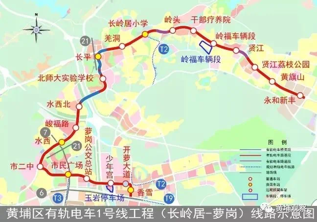 黄埔有轨1号线串联了永和片区、长岭居片区、长平片区、水西村片区和新黄埔政文中心片区,弥补了永顺大道沿线城市轨道交通线网的少有,是重点解决区内交通的问题,并带动沿线用地的开发建设的中低运量交通系统。