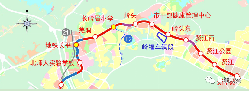 有轨1号线首通示范段(北师大实验学校-新丰)7.7公里,共11站、10区间:北师大实验学校、地铁长平、羌洞、长岭居小学、岭头、市干部健康管理中心、岭头东、贤江西、贤江公园、贤江、新丰路。