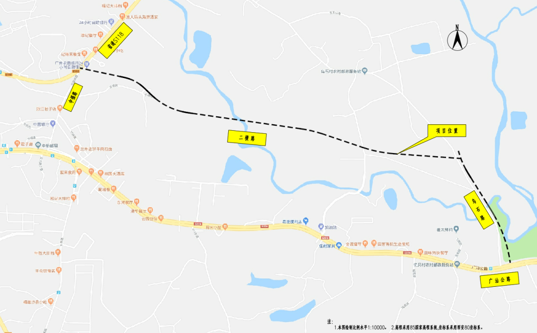 广州市增城区中新镇中新科技创新产业园,规划二横路起点与省道S118线相交,终点与乌石路相交;乌石路起点是规划二横路,终点与广汕公路相交。
