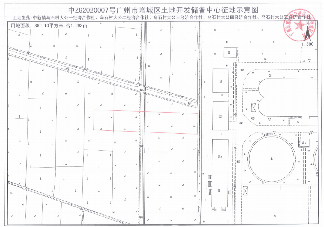 拟征收土地的位置和范围:中新镇乌石村、大田村(详见现场公告附图)