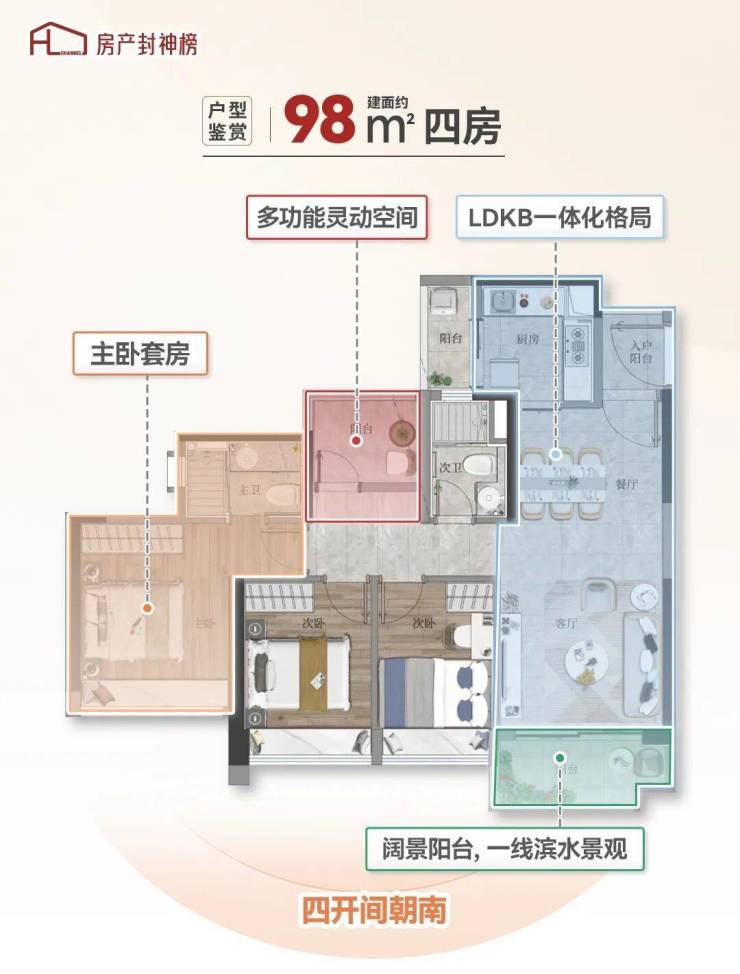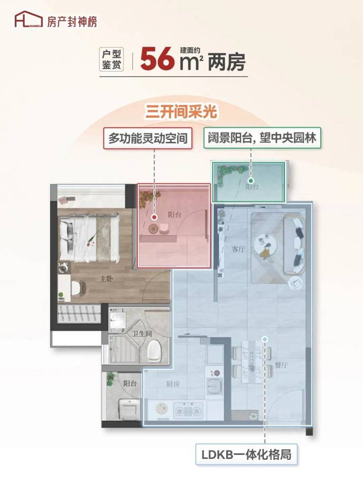 「倚璟湾」推出建面约 56-114㎡二至四房,全系双阳台,空间灵活性强,注重成长型空间的预留。