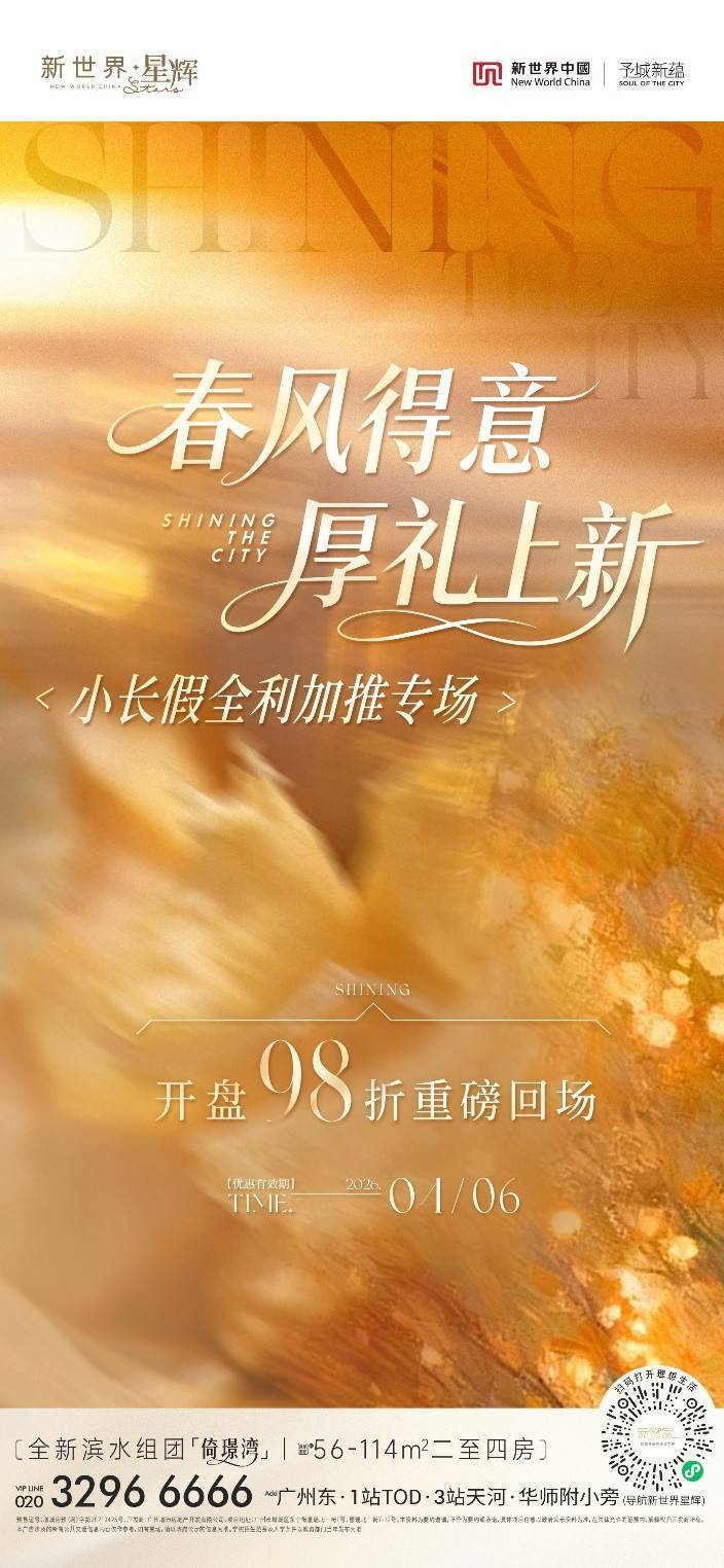2026 年广州招生季热度传导至楼市,“名校 + 现房”组合成为最强流量密码。新世界星辉全新滨水组团「倚璟湾」开盘即火:单日来访超 288 组、筹转定率 100%、首批房源当日售罄。市场用真金白银投票:能读华师附小、今年能收楼的房子,才是硬通货。