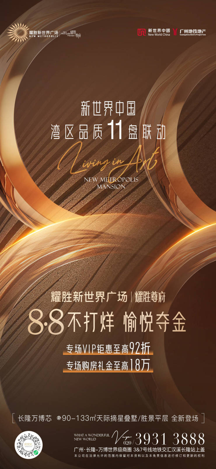 本周耀胜新世界“88不打烊”VIP专场宠粉福利、优选好房、至高钜惠席位先到先享!感兴趣的朋友快来预约参观吧020-39313888。